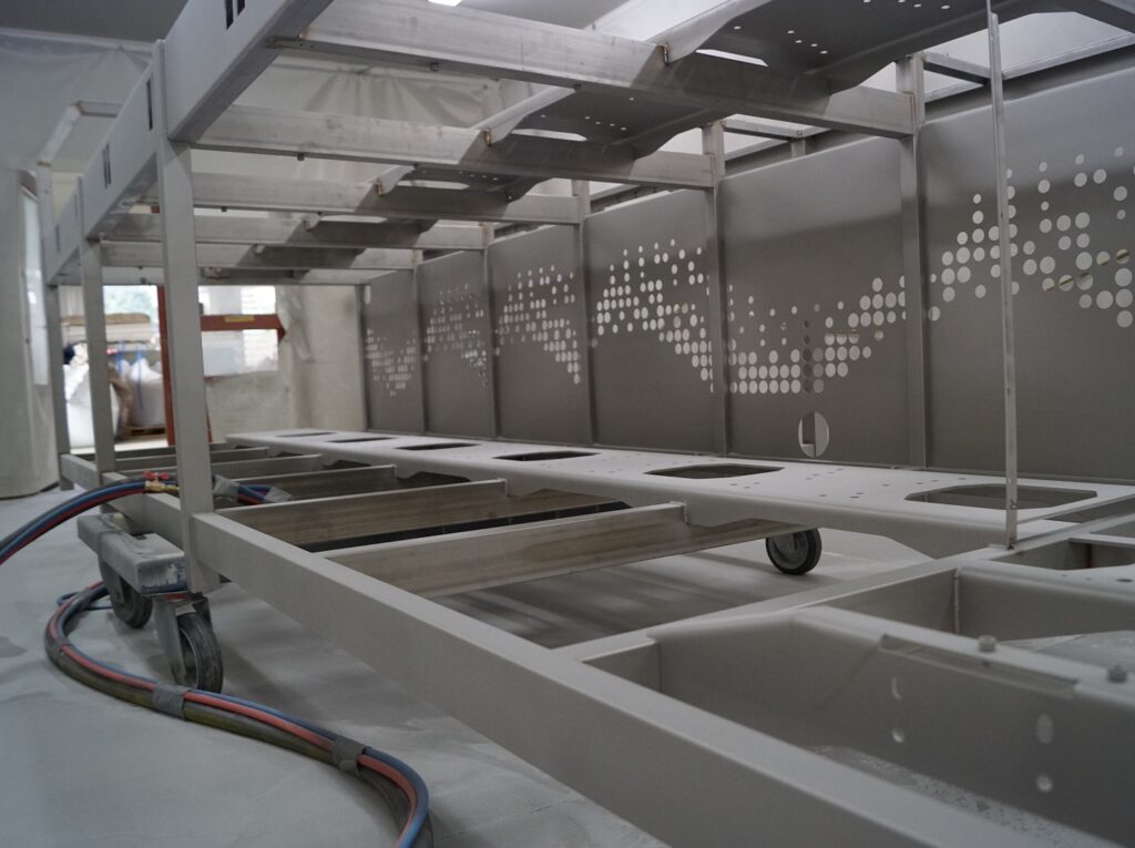 Wij beschikken over 2 grote spuitcabines van 20 meter lang 5 meter breed en 5 meter hoog deze cabines zijn beide voorzien van een koolstofafzuiging. Duurzame methode maar heel milieu bewust bezig op deze manier.